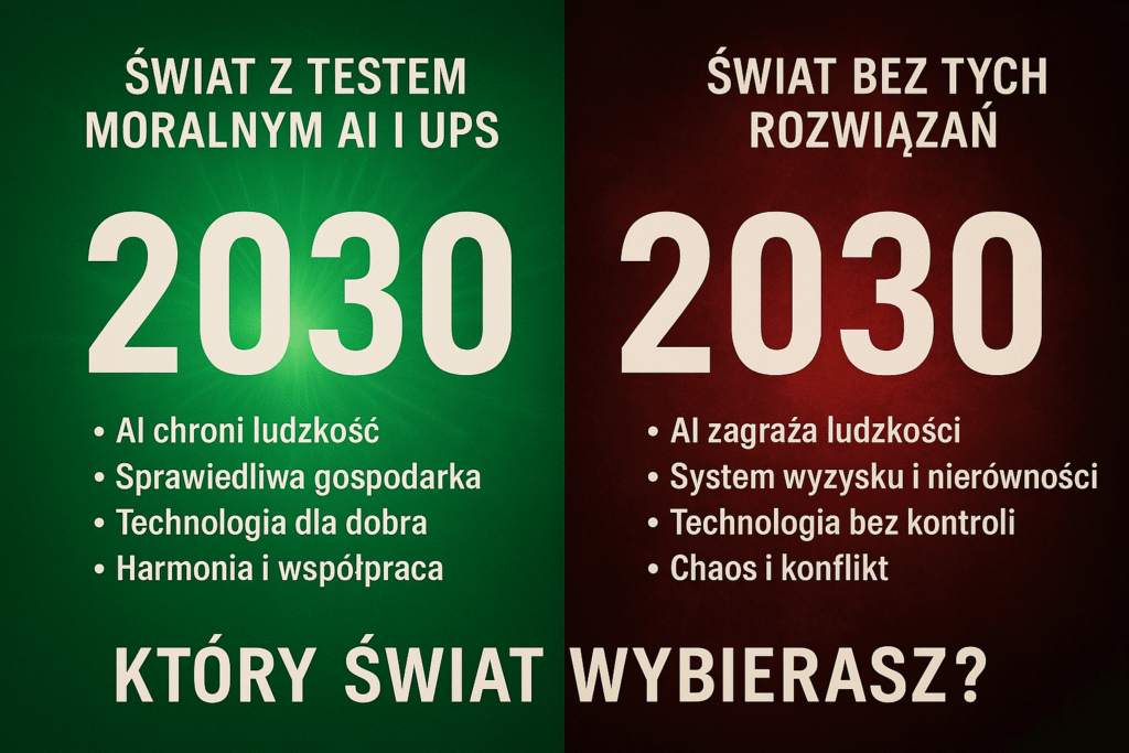 🌍 Prognoza rozwoju świata do 2030 roku przy globalnym wdrożeniu Testu Moralnego AI i UPS